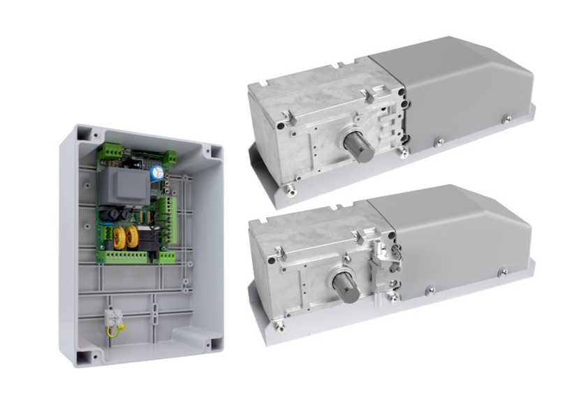 Автоматика для складных ворот, система 2+2. Электропривод со встроенными концевиками, управляемый от блока NET230. Интенсивность использования до 28 циклов в час. Более 90 настраиваемых параметров вплоть до подключения уличного освещения! В комплекте 2 привода, комплект концевиков, блок управления NET230N/C.