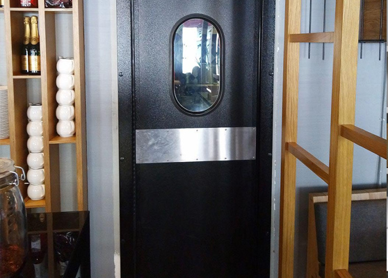 Для любых типов предприятий общественного питания лучшим решением по разделению зон является установка маятниковых дверей на гравитационных петлях. Мы предлагаем маятниковые двери с многослойным полотном на базе пенополиуретанового наполнителя. Неограниченный по длительности ресурс службы полотен таких изделий обеспечивается характеристиками пенополиуретана, не впитывающего влагу и не разрушающегося со временем, как это происходит с рассыпающимися внутри полотнами из пенопласта и набухающими от влаги с последующим гниением наполнителями из минеральной ваты. Конструкция гравитационных петель со специально разработанными для них усиленными парами трения деталей позволяет давать нам пожизненную на весь срок службы двери гарантию.