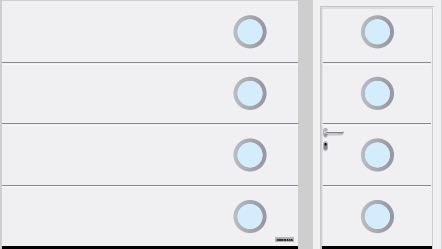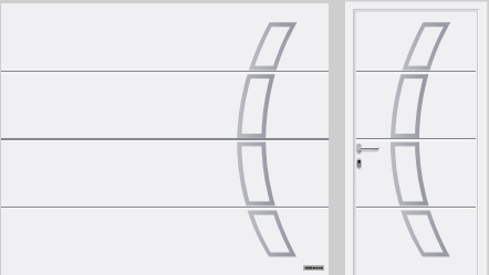 | T-гофр (LPU 42), мотив 501 со сплошными вставками под нержавеющую сталь или цвета RAL по выбору, белого цвета | T-гофр (LPU 42), мотив 500 с частичными вставками под нержавеющую сталь белого цвета | Элемент серии Design с остеклением из пластмассы и рамкой из нержавеющей стали |