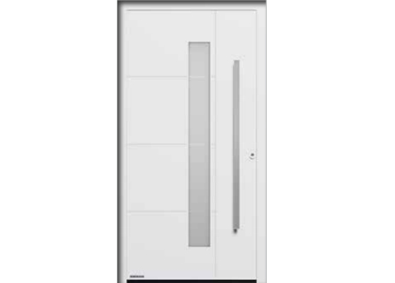 Входная дверь Hormann ThermoSafe Мотив 877 ручка из нержавеющей стали HOE 610, стекло с мотивом Float, матовое, с 3 прозрачными полосами